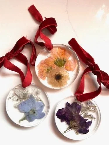 Mini 2.3” resin ornaments featuring the tiniest blooms from your bouquet are available in sets of 3 for $75.